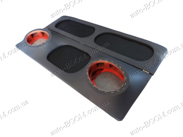 Акустическая полка ВАЗ 2108 серая, на фанере, пирамида устанавливается на штатные места вместо старой. Они не скрепят и не дребезжат при езде. Благодаря ней улучшается качество звука аудиосистемы. К тому же аудиополка служит украшением интерьера ВАЗ 2108. В нашем интернет магазине можно купить и другие части для обшивки салона, тем самым освежая его или полностью тюнингуя. Основа полки выполнена из ДСП и специально усилена фанерой, толщина которой составляет 4-6 мм. Полка перетянута автомобильным кожзамом, а под ним небольшая поролоновая подложка. Полка имеет усиленные подиумы для динамиков, и такая технология ее проектирования называется "пирамида". Вырезы под динамики могут быть круглыми - 13, 16 см; или овальными - 6х9. Под заказ можно вырезать отверстия любых размеров. К тому же под заказ можно сделать отверстия любых размеров.