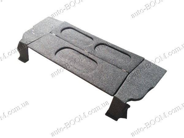 Акустическая полка ВАЗ 2108 карпет, с боковинами (липучка), на фанере устанавливается на штатные места вместо старой. Они не скрепят и не дребезжат при езде. Благодаря ней улучшается качество звука аудиосистемы. К тому же аудиополка служит украшением интерьера ВАЗ 2108. В нашем интернет магазине можно купить и другие части для обшивки салона, тем самым освежая его или полностью тюнингуя. Основа полки выполнена из ДСП и специально усилена фанерой, толщина которой составляет 4-6 мм. Полка перетянута серым карпетом, а под ним небольшая поролоновая подложка. Подиумы под динамики могут быть круглыми (d13, d16 см) или овальными (6х9). К тому же под заказ можно сделать отверстия любых размеров.