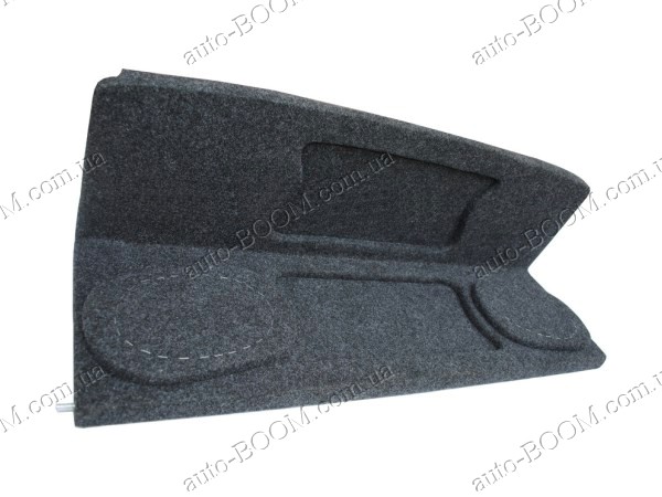 Акустическая полка ВАЗ 2108 карпет, на фанере устанавливается на штатные места вместо старой. Они не скрепят и не дребезжат при езде. Благодаря ней улучшается качество звука аудиосистемы. К тому же аудиополка служит украшением интерьера ВАЗ 2108. В нашем интернет магазине можно купить и другие части для обшивки салона, тем самым освежая его или полностью тюнингуя. Основа полки выполнена из ДСП и специально усилена фанерой, толщина которой составляет 4-6 мм. Полка перетянута серым карпетом, а под ним небольшая поролоновая подложка. Подиумы под динамики могут быть круглыми (d13, d16 см) или овальными (6х9). К тому же под заказ можно сделать отверстия любых размеров.