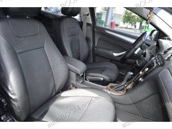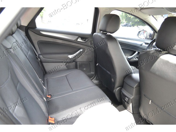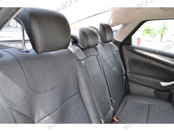 Автомобильные чехлы из экокожи Ford Mondeo 4 07-13 производятся украинской компанией Союз-Авто, пошиты из высококачественного экологически чистого кожзаменителя Аригон и экокожи. Данный материал легко поддается чистке обычными чистящими средствами, имеет отличную вентилируемую функцию. Из характеристик авточехлов следует выделить то, что задняя часть и передняя спинка закрыта, одевается мешком без резинок. Крепление осуществляется с помощью липучек на задние и передние спинки, а сведение крепится с помощью веревки. В подголовниках имеются специальные отверстия.