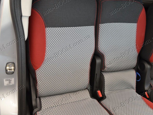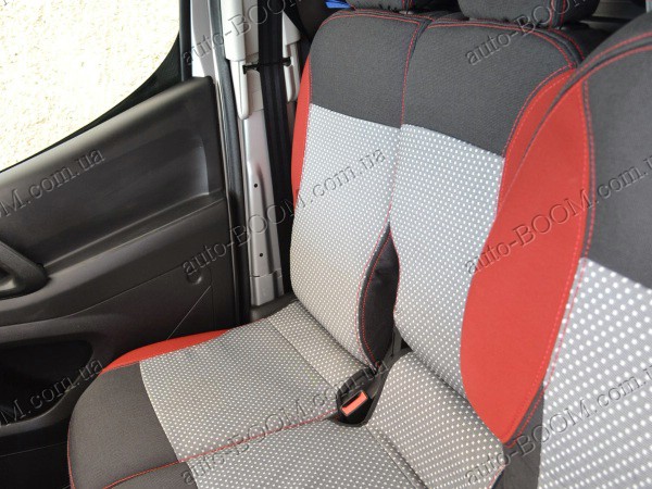 Автомобильные чехлы тканевые Citroen Berlingo 08- производятся украинской компанией Союз-Авто. Пошиты из высокоэластичной ткани жаккард. Данный материал легко поддается чистке обычными моющими средствами, хорошо пропускает воздух. Из характеристик авточехлов следует выделить то, что задняя часть и передняя спинка закрыта, одевается мешком без резинок. Крепление осуществляется с помощью липучек на задние и передние спинки, а сведение крепится с помощью веревки. В подголовниках имеются специальные отверстия.