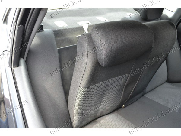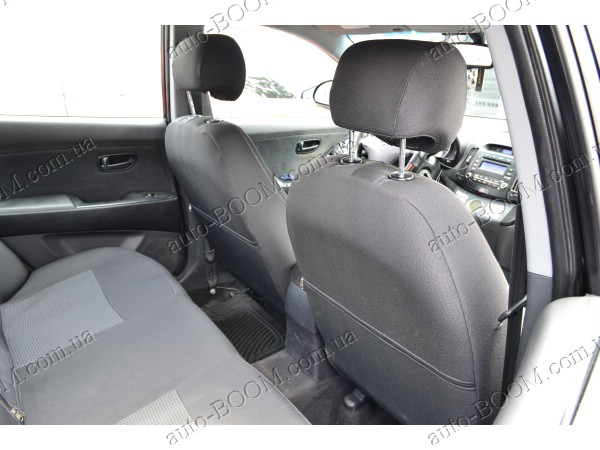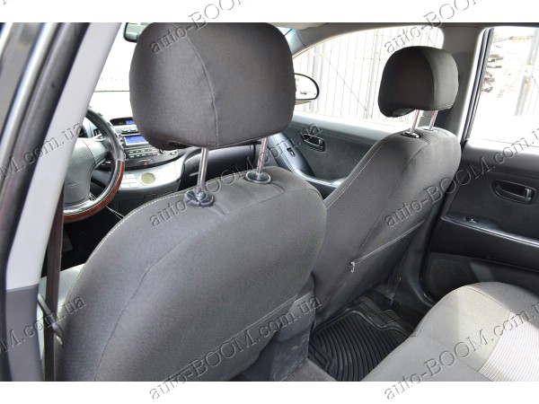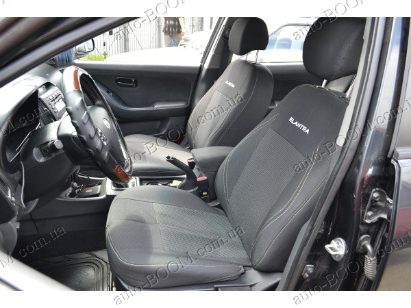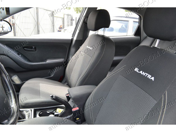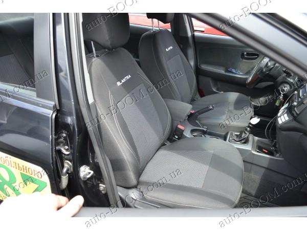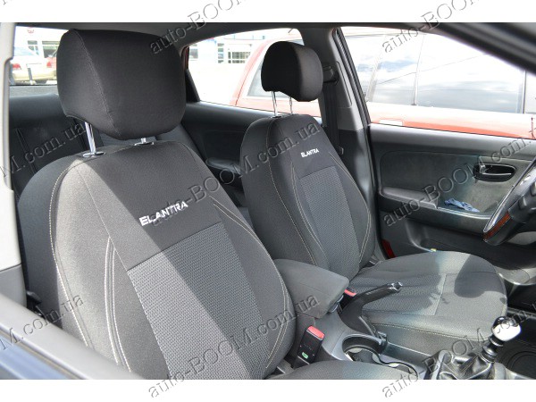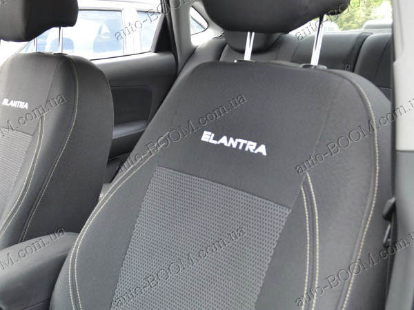 Автомобильные чехлы тканевые Hyundai Elantra 5 10- производятся украинской компанией Союз-Авто. Пошиты из высокоэластичной ткани жаккард. Данный материал легко поддается чистке обычными моющими средствами, хорошо пропускает воздух. Из характеристик авточехлов следует выделить то, что задняя часть и передняя спинка закрыта, одевается мешком без резинок. Крепление осуществляется с помощью липучек на задние и передние спинки, а сведение крепится с помощью веревки. В подголовниках имеются специальные отверстия.