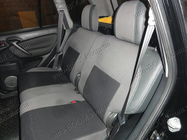 Чехлы на сиденья автомобиля Toyota RAV4 2 00-05 пошиты из материалов премиум класса от производителя MW Brothers. В комплекте поставляются авточехлы на: