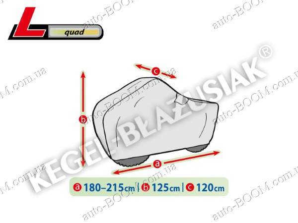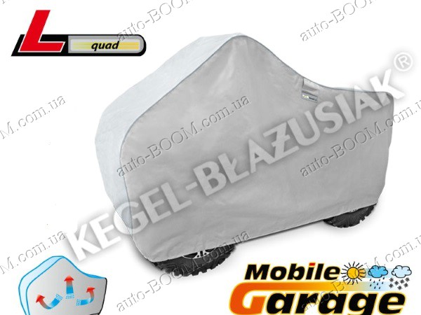 Чехол-тент для квадроцикла L Quad производится TM Kegel. Изготовлены из водонепроницаемого материала с системой микропор и вентиляционных отверстий, отводящих влагу из под чехла. Имеет конструкцию, которая может эффективно защитить весь мотоцикл. Чехлы для мотоцикла KEGEL-BLAZUSIAK самый надежный выбор для защиты данного вида транспорта, т. к. он гарантирует полную поддержку его в чистоте и предотвращение в появлении ржавчин. Чехол устойчив к ветру, снегу, инею, кислотным дождям, птичьему помёту, древесным сокам и солнечному излучению(UV). Высококачественный полипропилен с мягкой внутренней отделкой является залогом предупреждения всевозможных царапин на мотоцикле. Крепление осуществляется стандартным образом, по нижнему краю тента встроен шнур для связывания. Состав ткани:100% PP+PE.