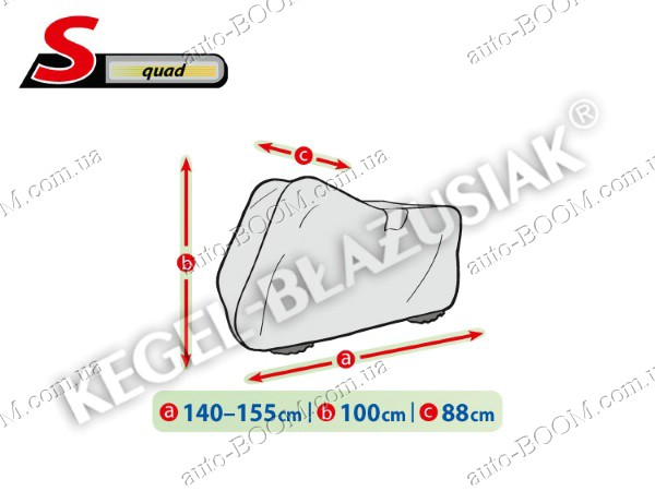 Чехол-тент для квадроцикла S Quad производится TM Kegel. Изготовлены из водонепроницаемого материала с системой микропор и вентиляционных отверстий, отводящих влагу из под чехла. Имеет конструкцию, которая может эффективно защитить весь мотоцикл. Чехлы для мотоцикла KEGEL-BLAZUSIAK самый надежный выбор для защиты данного вида транспорта, т. к. он гарантирует полную поддержку его в чистоте и предотвращение в появлении ржавчин. Чехол устойчив к ветру, снегу, инею, кислотным дождям, птичьему помёту, древесным сокам и солнечному излучению(UV). Высококачественный полипропилен с мягкой внутренней отделкой является залогом предупреждения всевозможных царапин на мотоцикле. Крепление осуществляется стандартным образом, по нижнему краю тента встроен шнур для связывания. Состав ткани:100% PP+PE.