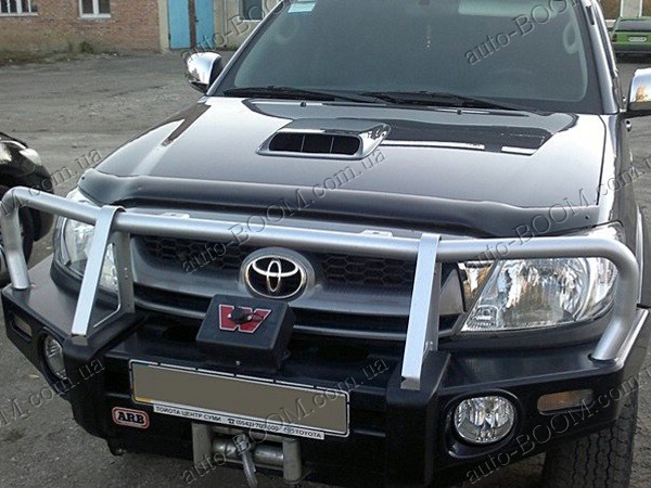 В простонародье эти аксессуары называются мухобойками, что является точным названием, так как одной из основных функций, которые они выполняют - это создание аэродинамического потока, который перебрасывает насекомых через крышу автомобиля. Благодаря этому лобовое стекло остается дольше чистым и легче моется. К тому же дефлектор на капоте выступает в роли украшения экстерьера машины. Купить дефлектор капота на Тойота Хайлюкс 7 можно оставив заявку на сайте или по телефону.