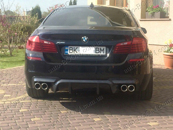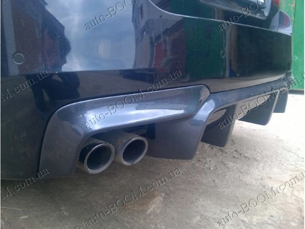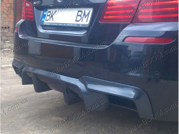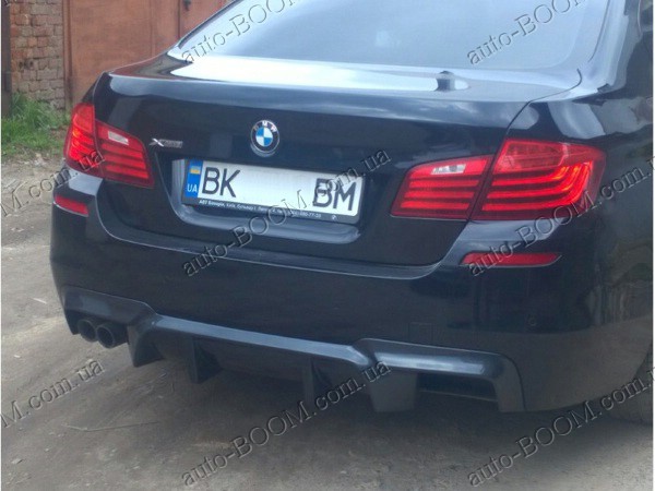 Диффузор заднего бампера BMW 5 F10/F11 09- изготавливается из качественного стеклопластика производство Lerrium. Разводка на две трубы. Данный элемент тюнинга не только создает модный и стильный образ вашему автомобилю, а так же увеличивает прижимную силу автомобиля, уменьшает подъемную силу задней части машины, охлаждает тормозные колодки и диски у автомобиля. Готов полностью под покраску. Не требует дополнительных доработок и подгонок, прочен и легок в установке.