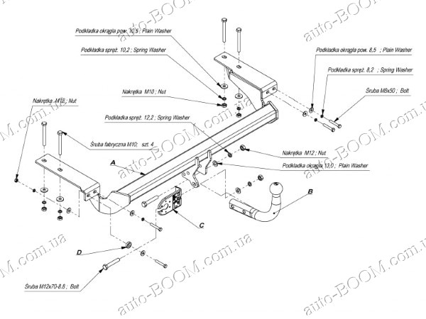 Фаркопы устанавливаются в штатные места, которые подготовлены производителем автомобилей, при подрезка бампера не нужна. Крюк фаркопа крепится на 2 болта.