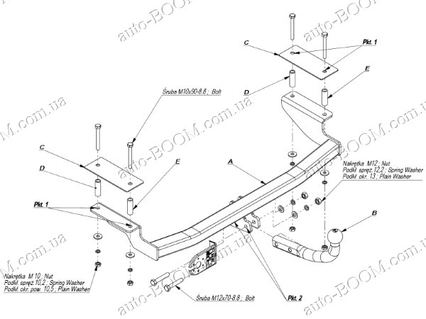 Фаркопы устанавливаются в штатные места, которые подготовлены производителем автомобилей, при подрезка бампера не нужна. Крюк фаркопа крепится на 2 болта.