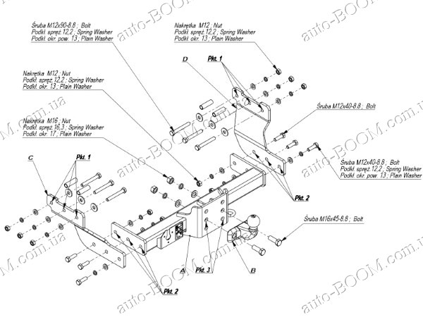 Фаркопы устанавливаются в штатные места, которые подготовлены производителем автомобилей, при подрезка бампера не нужна. Крюк фаркопа крепится на 2 болта.