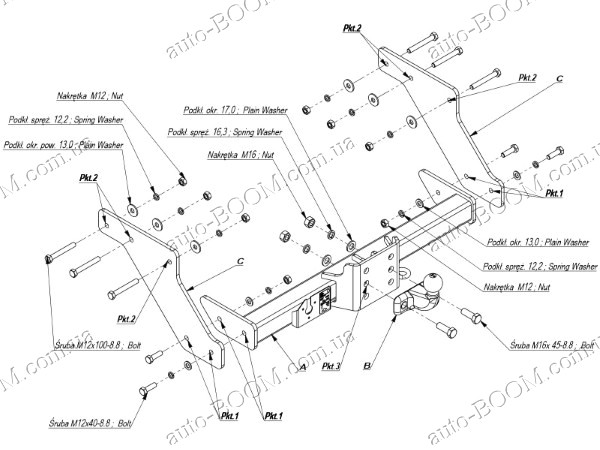 Фаркопы устанавливаются в штатные места, которые подготовлены производителем автомобилей, при подрезка бампера не нужна. Крюк фаркопа крепится на 2 болта.