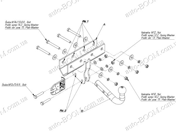 Фаркопы устанавливаются в штатные места, которые подготовлены производителем автомобилей. Также при его установке нужно сделать небольшую подрезку бампера. Она незначительна, поэтому не стоит думать, что это как-то ухудшит внешний вид автомобиля, но наоборот вместе с фаркопом машина будет иметь завершенный внешний вид. Крюк фаркопа крепится на 2 болта.