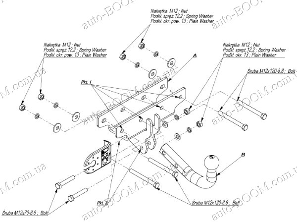 Фаркопы устанавливаются в штатные места, которые подготовлены производителем автомобилей, при подрезка бампера не нужна. Крюк фаркопа крепится на 2 болта.