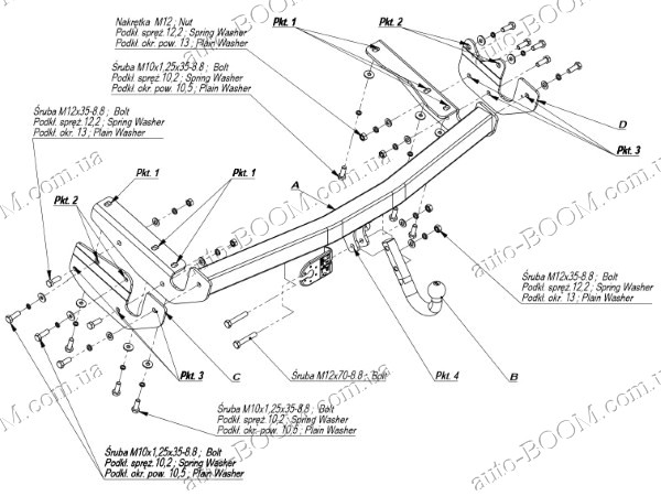 Фаркопы устанавливаются в штатные места, которые подготовлены производителем автомобилей. Также при его установке нужно сделать небольшую подрезку бампера. Она незначительна, поэтому не стоит думать, что это как-то ухудшит внешний вид автомобиля, но наоборот вместе с фаркопом машина будет иметь завершенный внешний вид. Крюк фаркопа крепится на 2 болта.