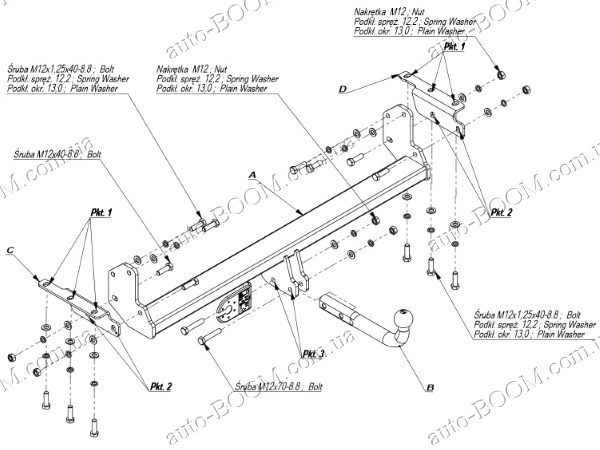 Фаркопы устанавливаются в штатные места, которые подготовлены производителем автомобилей, при подрезка бампера не нужна. Крюк фаркопа крепится на 2 болта.