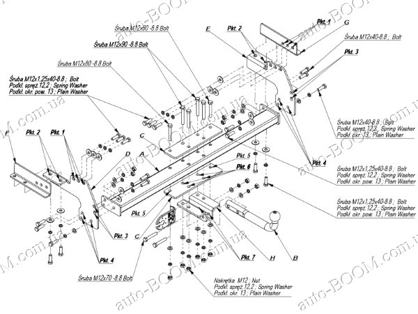 Фаркопы устанавливаются в штатные места, которые подготовлены производителем автомобилей, при подрезка бампера не нужна. Крюк фаркопа крепится на 2 болта.