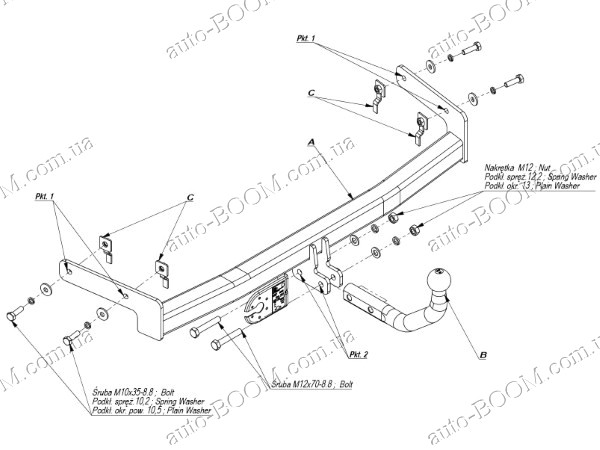 Фаркопы устанавливаются в штатные места, которые подготовлены производителем автомобилей, при подрезка бампера не нужна. Крюк фаркопа крепится на 2 болта.