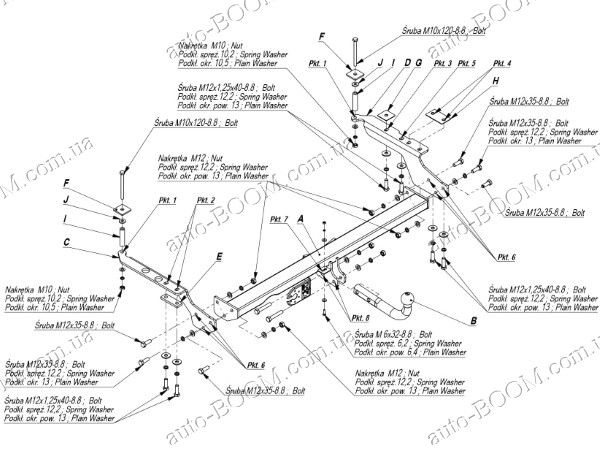 Фаркопы устанавливаются в штатные места, которые подготовлены производителем автомобилей, при подрезка бампера не нужна. Крюк фаркопа крепится на 2 болта.