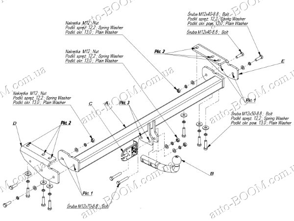 Фаркопы устанавливаются в штатные места, которые подготовлены производителем автомобилей, при подрезка бампера не нужна. Крюк фаркопа крепится на 2 болта.