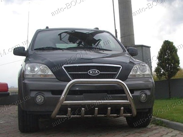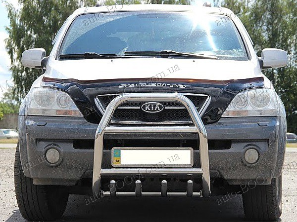 Кенгурятники на Kia Sorento 02-09 из нержавеющей качественной стали производство St-line (Турция). Такая конструкция состоит из спаянных труб и стержней. Крепятся в основном спереди, но реже сзади автомобиля. Предназначения кенгурятников в наше время, как защита кузова при езде по бездорожью. При неожиданном столкновении они уменьшат или смягчат удар от повреждения и деформации автомобиля. Кенгурятники служат не только, как защита, но и как прекрасный аксессуар для вашего авто, придавая солидный привлекательный внешний вид. Чаще всего используют такой аксессуар для джипов, микроавтобусов, пикапов. Купить и забрать данный товар на автомобиль Киа Соренто можно у нас в магазине лично или с доставкой по Украине.