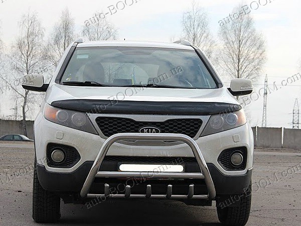 Кенгурятники на Kia Sorento 2 12- из нержавеющей качественной стали производство St-line (Турция). Такая конструкция состоит из спаянных труб и стержней. Крепятся в основном спереди, но реже сзади автомобиля. Предназначения кенгурятников в наше время, как защита кузова при езде по бездорожью. При неожиданном столкновении они уменьшат или смягчат удар от повреждения и деформации автомобиля. Кенгурятники служат не только, как защита, но и как прекрасный аксессуар для вашего авто, придавая солидный привлекательный внешний вид. Чаще всего используют такой аксессуар для джипов, микроавтобусов, пикапов. Купить и забрать данный товар на автомобиль Киа Соренто можно у нас в магазине лично или с доставкой по Украине.