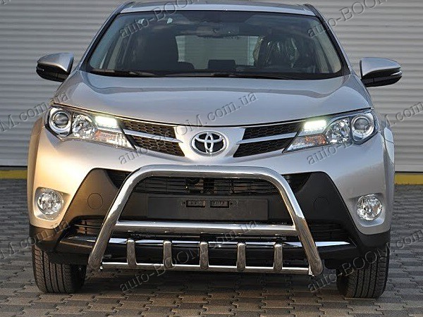 Кенгурятники на Toyota RAV4 4 13- из нержавеющей качественной стали производство St-line (Турция). Такая конструкция состоит из спаянных труб и стержней. Крепятся в основном спереди, но реже сзади автомобиля. Предназначения кенгурятников в наше время, как защита кузова при езде по бездорожью. При неожиданном столкновении они уменьшат или смягчат удар от повреждения и деформации автомобиля. Кенгурятники служат не только, как защита, но и как прекрасный аксессуар для вашего авто, придавая солидный привлекательный внешний вид. Чаще всего используют такой аксессуар для джипов, микроавтобусов, пикапов. Купить и забрать данный товар на автомобиль Тойота Рав 4 можно у нас в магазине лично или с доставкой по Украине.