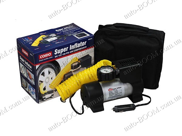 Автомобильный компрессор Coido 6218 высокого давления работает от прикуривателя, быстро подкачает колеса, а манометр покажет точное давление воздуха в накачиваемом резиновом предмете. Защищен от перегрузок автоматической системой отключения, воздушный шланг легко одевается и снимается, и вместе с компрессором компактно складывается в удобную, прочную для хранения и перенесения сумку. Надежен и долговечен в работе.