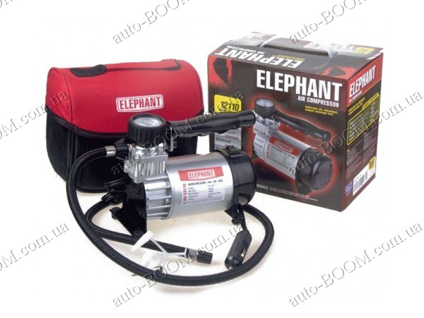 Автомобильный компрессор Elephant КА-12110 незаменимый аксессуар для автомобилистов и любителей активного отдыха. Предназначен дня накачивания шин легковых автомобилей, а также с помощью дополнительных переходников которые идут в комплекте, вы за считанные минуты сможете накачать резиновую лодку, надувной матрац, спортивные мячи, и надувные детские игрушки. Компрессор работает от бортового питания 12 В. Подключается к прикуривателю, и имеет автоматическую защиту от перегрузок.