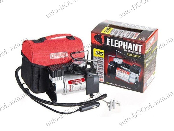 Автомобильный компрессор Elephant КА-12300 незаменимый аксессуар для автомобилистов и любителей активного отдыха. Предназначен дня накачивания шин легковых автомобилей, а также с помощью дополнительных переходников которые идут в комплекте, вы за считанные минуты сможете накачать резиновую лодку, надувной матрац, спортивные мячи, и надувные детские игрушки. Компрессор работает от бортового питания 12 В. Подключается к прикуривателю.