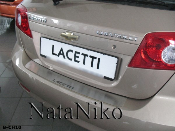 Накладка на бампер Chevrolet Lacetti 04- хетчбек производится украинской фирмой NataNiko. По желанию и совершенно БЕСПЛАТНО можем обклеить карбоновой пленкой. Материал - высоколегированная сталь толщиной 0,8мм. Устанавливается на обезжиренную поверхность с помощью двустороннего скотча ЗМ. Накладка бампера на Шевроле Лачетти особенно необходима для сохранения целостности лакокрасочного покрытия, так как багаж часто зацепляется и царапает краску, а порой даже приводит к сколам. Но благодаря такой защите бампера багажником можно пользоваться в полной мере и без опасения. К тому же эта накладка имеет красивый внешний вид, и станет хорошим дополнением экстерьера автомобиля.