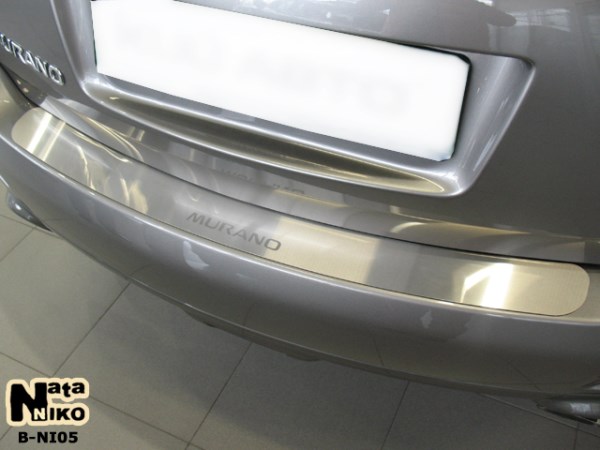 Накладка на бампер Nissan Murano 2 08- производится украинской фирмой NataNiko. По желанию и совершенно БЕСПЛАТНО можем обклеить карбоновой пленкой. Материал - высоколегированная сталь толщиной 0,8мм. Устанавливается на обезжиренную поверхность с помощью двустороннего скотча ЗМ. Накладка бампера на Ниссан Мурано 2 особенно необходима для сохранения целостности лакокрасочного покрытия, так как багаж часто зацепляется и царапает краску, а порой даже приводит к сколам. Но благодаря такой защите бампера багажником можно пользоваться в полной мере и без опасения. К тому же эта накладка имеет красивый внешний вид, и станет хорошим дополнением экстерьера автомобиля.