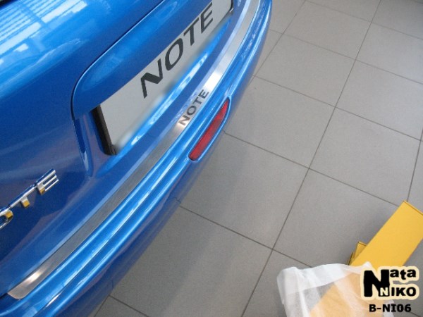 Накладка на бампер Nissan Note 05-12 производится украинской фирмой NataNiko. По желанию и совершенно БЕСПЛАТНО можем обклеить карбоновой пленкой. Материал - высоколегированная сталь толщиной 0,8мм. Устанавливается на обезжиренную поверхность с помощью двустороннего скотча ЗМ. Накладка бампера на Ниссан Ноут особенно необходима для сохранения целостности лакокрасочного покрытия, так как багаж часто зацепляется и царапает краску, а порой даже приводит к сколам. Но благодаря такой защите бампера багажником можно пользоваться в полной мере и без опасения. К тому же эта накладка имеет красивый внешний вид, и станет хорошим дополнением экстерьера автомобиля.