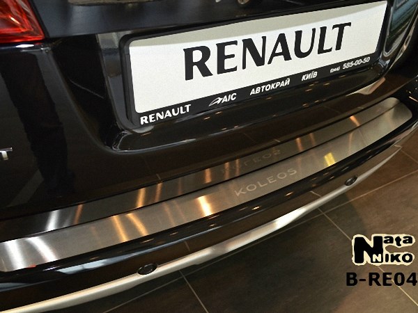 Накладка на бампер Renault Koleos 08- производится украинской фирмой NataNiko. По желанию и совершенно БЕСПЛАТНО можем обклеить карбоновой пленкой. Материал - высоколегированная сталь толщиной 0,8мм. Устанавливается на обезжиренную поверхность с помощью двустороннего скотча ЗМ. Накладка бампера на Рено Колеос особенно необходима для сохранения целостности лакокрасочного покрытия, так как багаж часто зацепляется и царапает краску, а порой даже приводит к сколам. Но благодаря такой защите бампера багажником можно пользоваться в полной мере и без опасения. К тому же эта накладка имеет красивый внешний вид, и станет хорошим дополнением экстерьера автомобиля.