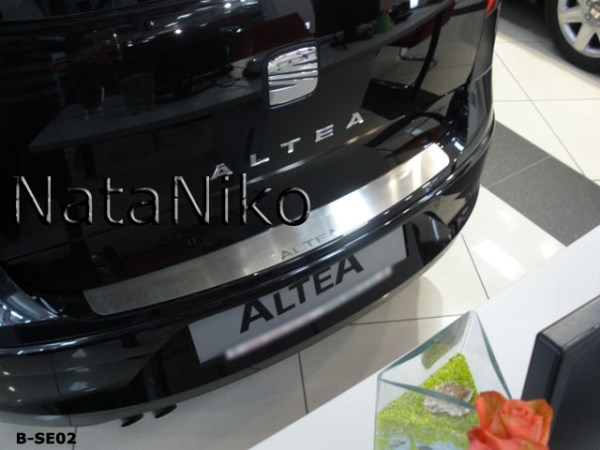 Накладка на бампер Seat Altea 04- производится украинской фирмой NataNiko. По желанию и совершенно БЕСПЛАТНО можем обклеить карбоновой пленкой. Материал - высоколегированная сталь толщиной 0,8мм. Устанавливается на обезжиренную поверхность с помощью двустороннего скотча ЗМ. Накладка бампера на Сеат Алтеа особенно необходима для сохранения целостности лакокрасочного покрытия, так как багаж часто зацепляется и царапает краску, а порой даже приводит к сколам. Но благодаря такой защите бампера багажником можно пользоваться в полной мере и без опасения. К тому же эта накладка имеет красивый внешний вид, и станет хорошим дополнением экстерьера автомобиля.