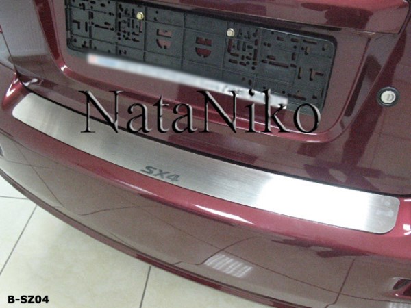Накладка на бампер Suzuki SX4 06-13 производится украинской фирмой NataNiko. По желанию и совершенно БЕСПЛАТНО можем обклеить карбоновой пленкой. Материал - высоколегированная сталь толщиной 0,8мм. Устанавливается на обезжиренную поверхность с помощью двустороннего скотча ЗМ. Накладка бампера на Сузуки SX4 особенно необходима для сохранения целостности лакокрасочного покрытия, так как багаж часто зацепляется и царапает краску, а порой даже приводит к сколам. Но благодаря такой защите бампера багажником можно пользоваться в полной мере и без опасения. К тому же эта накладка имеет красивый внешний вид, и станет хорошим дополнением экстерьера автомобиля.
