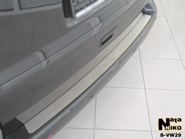 Накладка на бампер VW T5 03- производится украинской фирмой NataNiko. По желанию и совершенно БЕСПЛАТНО можем обклеить карбоновой пленкой. Материал - высоколегированная сталь толщиной 0,8мм. Устанавливается на обезжиренную поверхность с помощью двустороннего скотча ЗМ. Накладка бампера на Фольксваген Т5 особенно необходима для сохранения целостности лакокрасочного покрытия, так как багаж часто зацепляется и царапает краску, а порой даже приводит к сколам. Но благодаря такой защите бампера багажником можно пользоваться в полной мере и без опасения. К тому же эта накладка имеет красивый внешний вид, и станет хорошим дополнением экстерьера автомобиля.