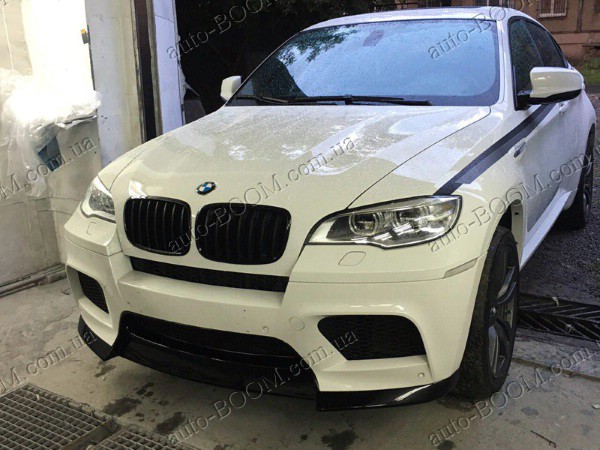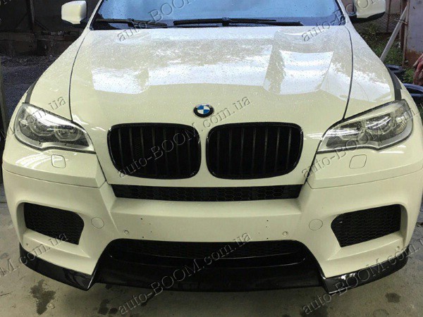 Накладка на М-бампер BMW X6 E71 08-14 изготовлена из высококачественного стеклопластика производство Lerrium. Лицевая сторона покрыта гелькоутом для стойкости к агрессивным средам. Данная накладка подходит только на М-бампер. Не смотря на свой грозный вид, клиренс совсем не нарушается. Нижний кант накладки выходит на нижний срез бампера. Прочная и легкая в установке, крепежи находятся на уровне заводских, полностью готова под покраску.