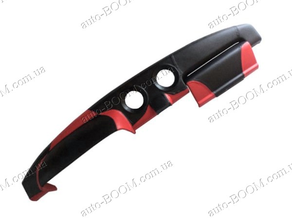 Накладка на торпеду ВАЗ Нива 2121 красная изготовлена фирмой Probass. Она идеально повторяет форму панели и крепится на силикон. Накладка на торпедо служит отличным аксессуаром для тюнинга салона. Хотя на первый взгляд это может показаться незначительным изменением, однако все состоит из мелочей и особенно это заметно, когда родная панель уже потеряла свой внешний или ее черный цвет просто надоел. Она изготовлена из пластика и перетянута кожзаменителем. Что касается материала основы, то лучше не оставлять автомобиль под открытым солнцем на жаре, так как данный аксессуар может незначительно изменять свою форму при высоких температурах. Материал обивки качественный и практичный, что значительно повышает срок службы накладки на торпеду.