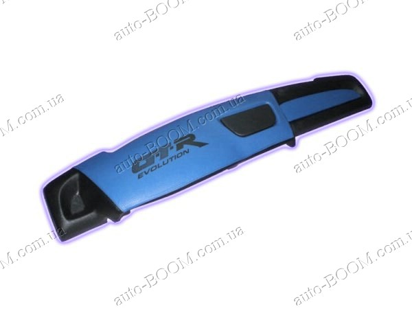 Накладка на торпеду ВАЗ 2109 синяя высокая изготовлена фирмой Probass. Она идеально повторяет форму панели и крепится на силикон. Накладка на торпедо служит отличным аксессуаром для тюнинга салона. Хотя на первый взгляд это может показаться незначительным изменением, однако все состоит из мелочей и особенно это заметно, когда родная панель уже потеряла свой внешний или ее черный цвет просто надоел. Она изготовлена из пластика и перетянута кожзаменителем. Что касается материала основы, то лучше не оставлять автомобиль под открытым солнцем на жаре, так как данный аксессуар может незначительно изменять свою форму при высоких температурах. Материал обивки качественный и практичный, что значительно повышает срок службы накладки на торпеду.