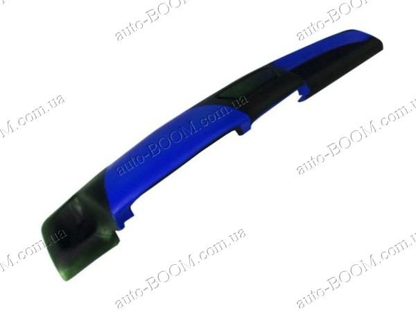 Накладка на торпеду ВАЗ 21099 синяя высокая изготовлена фирмой Probass. Она идеально повторяет форму панели и крепится на силикон. Накладка на торпедо служит отличным аксессуаром для тюнинга салона. Хотя на первый взгляд это может показаться незначительным изменением, однако все состоит из мелочей и особенно это заметно, когда родная панель уже потеряла свой внешний или ее черный цвет просто надоел. Она изготовлена из пластика и перетянута кожзаменителем. Что касается материала основы, то лучше не оставлять автомобиль под открытым солнцем на жаре, так как данный аксессуар может незначительно изменять свою форму при высоких температурах. Материал обивки качественный и практичный, что значительно повышает срок службы накладки на торпеду.