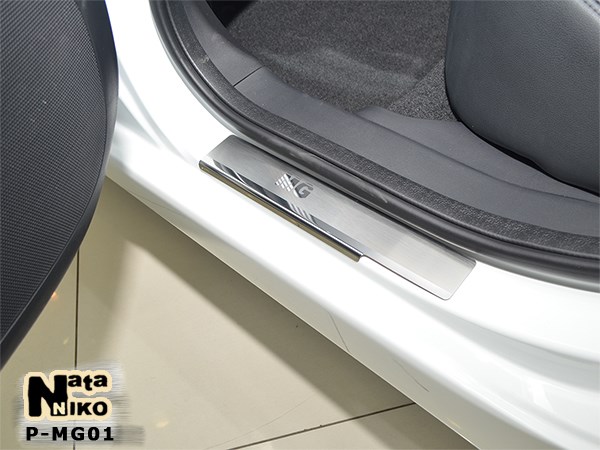 Накладки на пороги MG 350 12- производятся фирмой NataNiko (4 штуки в комплекте). По желанию и совершенно БЕСПЛАТНО можем обклеить карбоновой пленкой. Они изготавливаются из нержавеющей стали, толщина которой составляет 0,5 мм. Крепятся на металлическую часть порогов на двусторонний скотч ЗМ, который уже нанесен с внутренней стороны накладок. Данные элементы в полной мере защищают лакокрасочное покрытие порогов МГ 350 от сколов и царапин. К тому же они будут служить на протяжении многих лет, потому что не подвержены коррозии. Однако накладки порогов не только выполняют защитную функцию, но и служат украшением автомобиля, что, несомненно, будет радовать глаз.