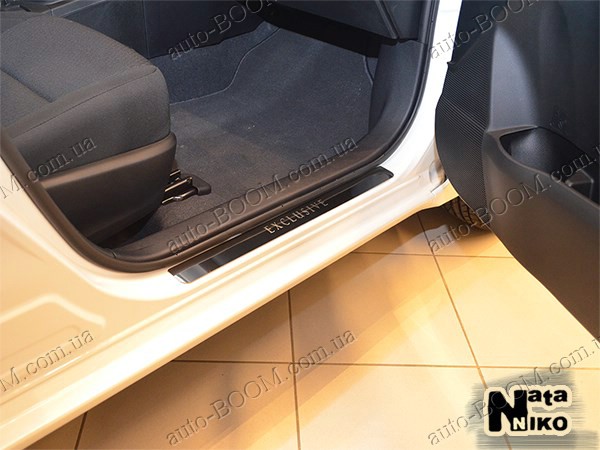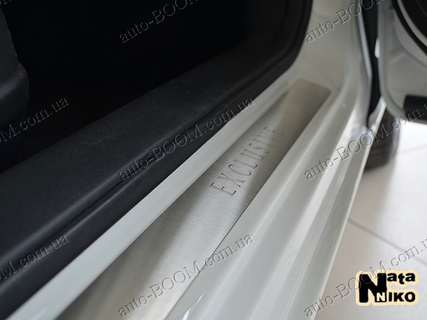 Накладки на пороги защищают лакокрасочное покрытие от царапин и потертостей, которые возникают при посадке и высадке из автомобиля. Также они играют декоративную роль, украшая машину. Купить накладки на пороги в нашем интернет магазине Вы можете, оставив заявку на сайте или позвонив менеджерам по телефону.