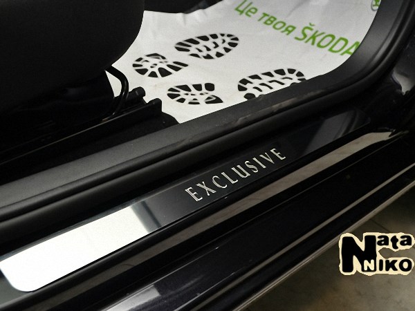 Накладки на пороги универсальные 545х45 (2шт) производятся фирмой NataNiko (2 штуки в комплекте). По желанию и совершенно БЕСПЛАТНО можем обклеить карбоновой пленкой. Они изготавливаются из нержавеющей стали, толщина которой составляет 0,5 мм. Крепятся на металлическую часть порогов на двусторонний скотч ЗМ, который уже нанесен с внутренней стороны накладок. Данные элементы в полной мере защищают лакокрасочное покрытие порогов от сколов и царапин. К тому же они будут служить на протяжении многих лет, потому что не подвержены коррозии. Однако накладки порогов не только выполняют защитную функцию, но и служат украшением автомобиля, что, несомненно, будет радовать глаз.