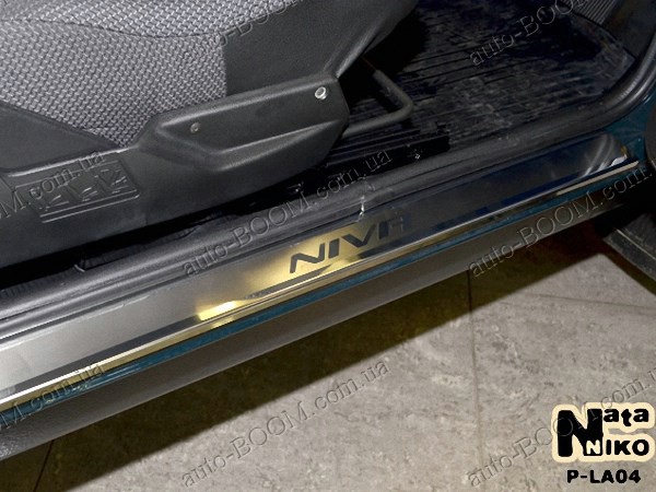 Накладки на пороги передние ВАЗ Нива, в комплекте 2 штуки. По желанию клиента их можно покрыть карбоновой пленкой. Эта услуга совершенно бесплатна. Данные аксессуары производятся фирмой NataNiko из высоколегированной нержавеющей стали, которую они получают от мировых производителей. Толщина накладки на пороги составляет 0,5 мм. Для их надежного и долговечного крепления используется двухсторонний скотч ЗМ. Он уже нанесен по внутреннему периметру.