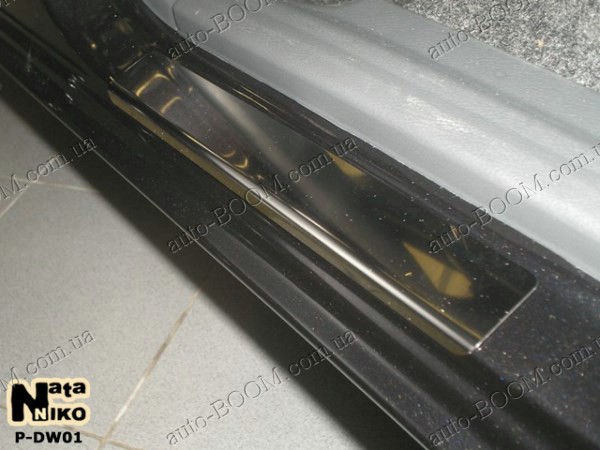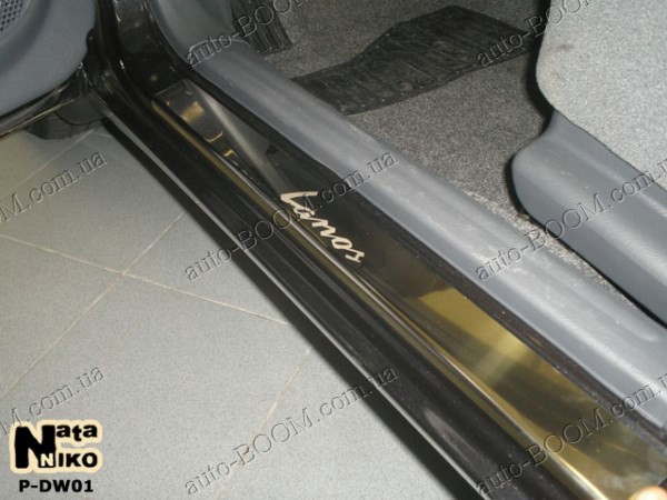 Накладки на пороги ЗАЗ Sens, в комплекте 4 штуки. По желанию клиента их можно покрыть карбоновой пленкой. Эта услуга совершенно бесплатна. Данные аксессуары производятся фирмой NataNiko из высоколегированной нержавеющей стали, которую они получают от мировых производителей. Толщина накладки на пороги составляет 0,5 мм. Для их надежного и долговечного крепления используется двухсторонний скотч ЗМ. Он уже нанесен по внутреннему периметру.