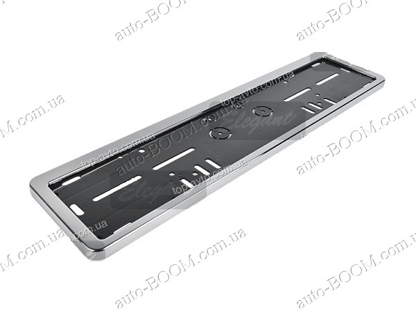 Рамка под номера хром производство Elegant. Данный аксессуар предназначен для закрепления номерного знака на все типы автомобилей отечественного и импортного производства, позволит не потерять регистрационный номер автомобиля в пути, а также защитит от кражи. Рамка украсит вашу машину, и номер не нужно будет сверлить, он будет защищен от грязи и царапин. Рамка защелкивается на основу и прикручивается к ней маленькими болтиками (идут в комплекте).