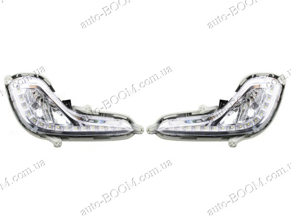 Дневные ходовые огни 2 штуки на Hyundai Accent 4 11- (горят все время) являются модельными и подходят только на этот автомобиль. Они имеют яркий светодиодный белый свет. Фирма производитель - AVTM, Турция. В комплекте поставляется проводка и необходимые крепежи. Эти фары устанавливаются в штатные места накладки ПТФ.