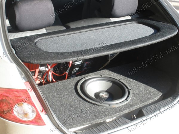 Акустическая полка на Chevrolet Lacetti 04- хетчбек черная, декоративная, на фанере