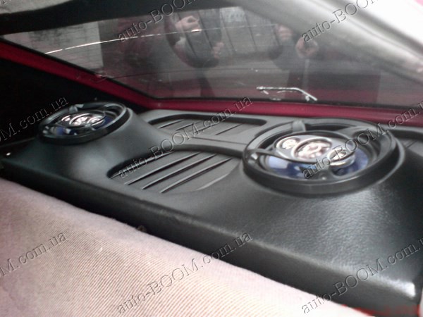 Акустическая полка Opel Kadett 84-91 хетчбек черная, на фанере, пирамида, высокий подиум устанавливается на штатные места вместо старой. Они не скрепят и не дребезжат при езде. Благодаря ней улучшается качество звука аудиосистемы. К тому же аудиополка служит украшением интерьера Опель Кадет. В нашем интернет магазине можно купить и другие части для обшивки салона, тем самым освежая его или полностью тюнингуя. Основа полки выполнена из ДСП и специально усилена фанерой, толщина которой составляет 4-6 мм. Полка перетянута автомобильным кожзамом, а под ним небольшая поролоновая подложка. Полка имеет усиленные подиумы для динамиков, и такая технология ее проектирования называется "пирамида". Вырезы под динамики могут быть круглыми - 13, 16 см; или овальными - 6х9. Под заказ можно вырезать отверстия любых размеров. К тому же под заказ можно сделать отверстия любых размеров.