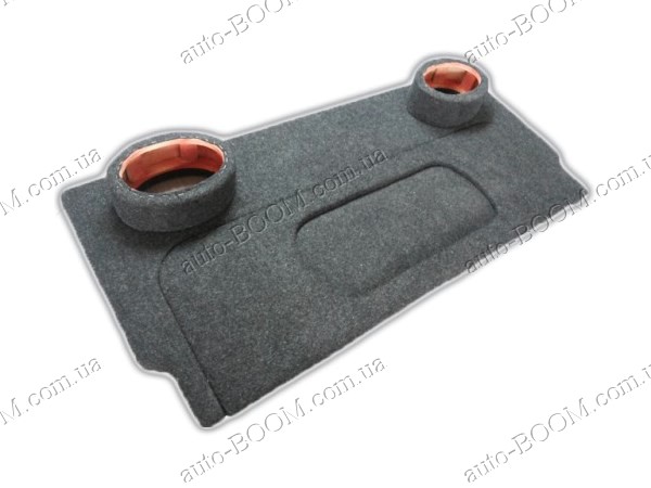 Акустическая полка Peugeot Partner 08- карпет, с опорой, на фанере, стандарт устанавливается на штатные места вместо старой. Они не скрепят и не дребезжат при езде. Благодаря ней улучшается качество звука аудиосистемы. К тому же аудиополка служит украшением интерьера Пежо Партнер. В нашем интернет магазине можно купить и другие части для обшивки салона, тем самым освежая его или полностью тюнингуя. Основа полки выполнена из ДСП и специально усилена фанерой, толщина которой составляет 4-6 мм. Полка перетянута серым карпетом, а под ним небольшая поролоновая подложка. Подиумы под динамики могут быть круглыми (d13, d16 см) или овальными (6х9). К тому же под заказ можно сделать отверстия любых размеров.